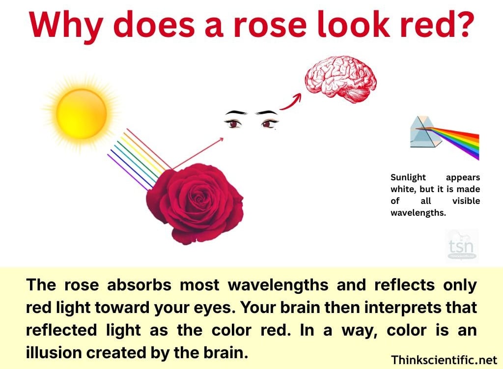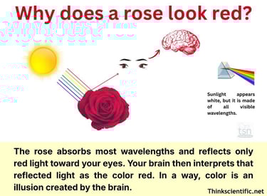Ever wondered why the world appears so vibrant? In reality, things don't have color; rather, light interacting with them gives them color. Sunlight is actually a mixture of all the colors in the rainbow even though it appears white to us. When sunlight hits an object, it absorbs some colors and reflects others. The reflected light from the object is perceived by our brain as the particular color. For example, tree leaves appear green because they reflect green wavelengths of sunlight and absorb the remaining wavelengths. They aren't truly green. White objects reflect almost all light, while black objects absorb almost all of it. Therefore, color is not a feature of the object itself; rather, it is a combination of light, our eyes and brains.